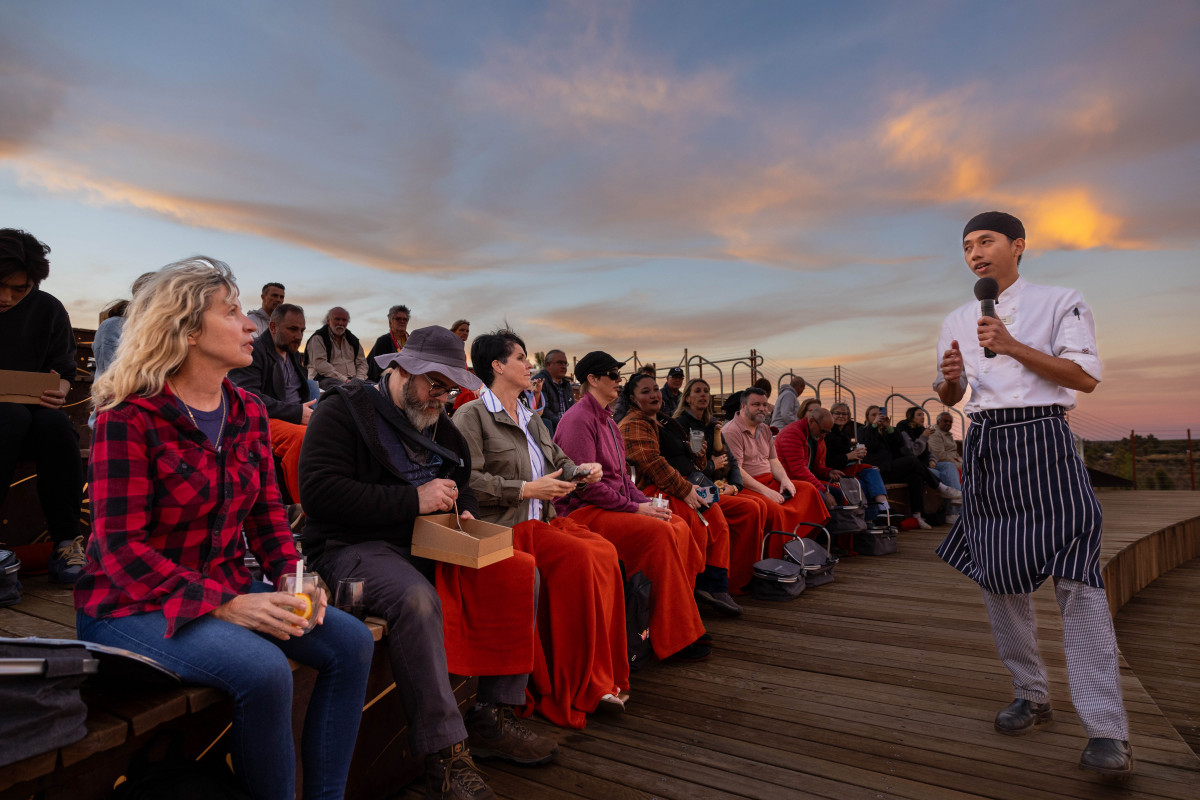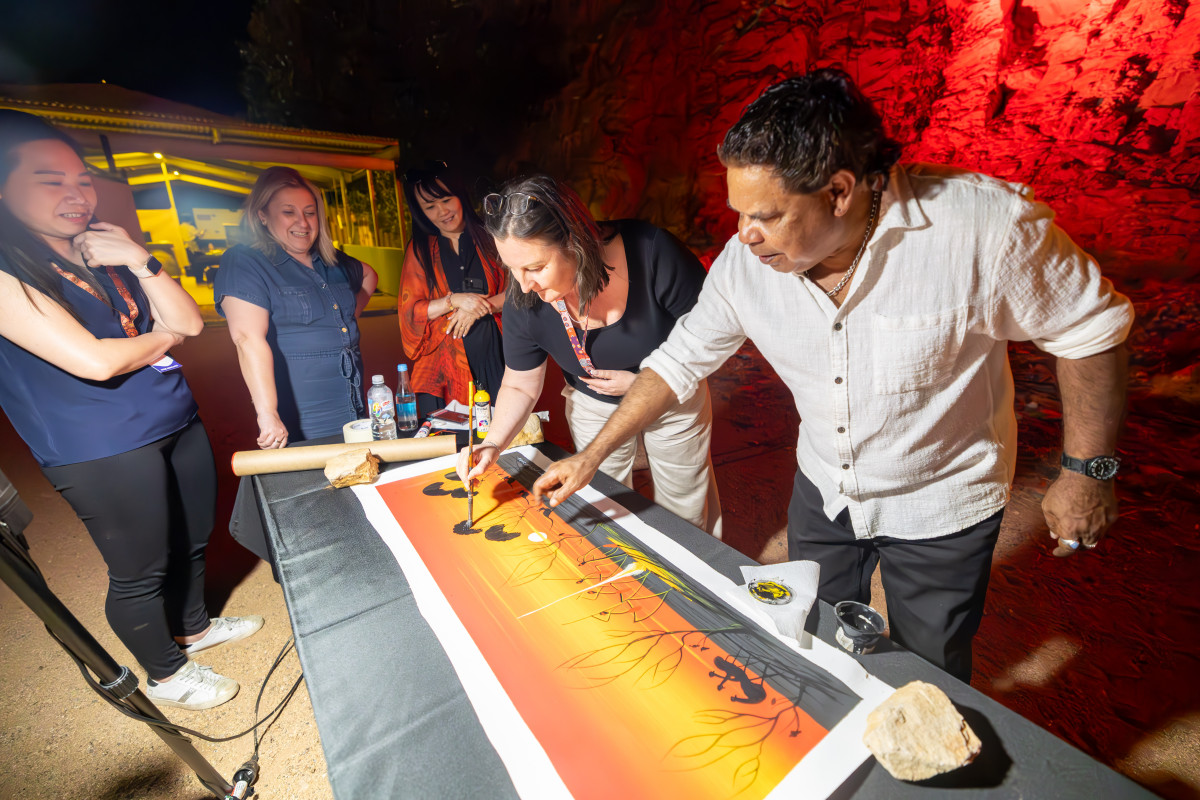 group at Wintjiri Wiru laser and drone cultural experience, Uluru